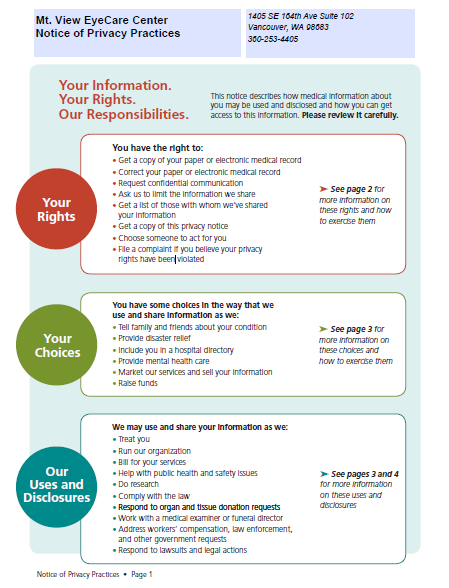 Mt. View EyeCare Center Notice of Privacy Practices